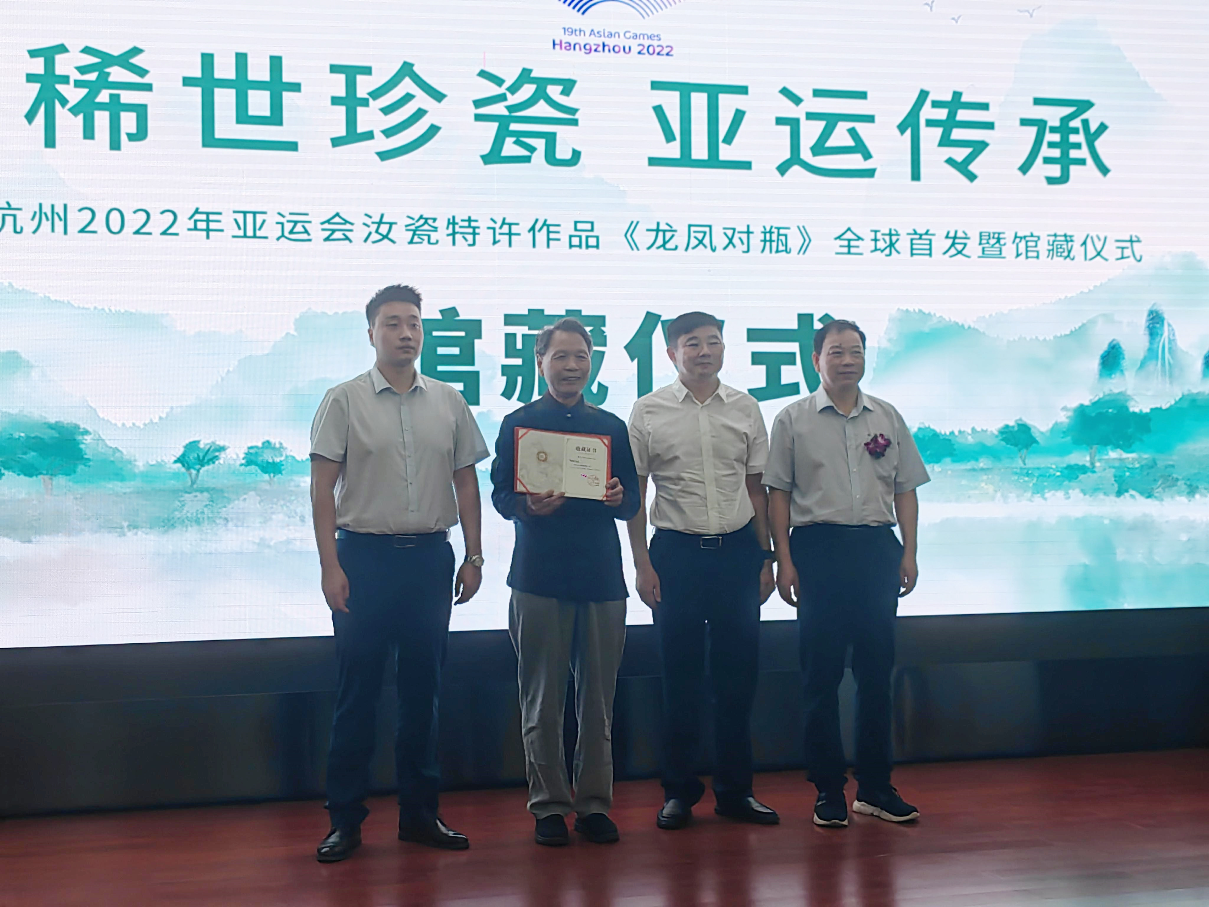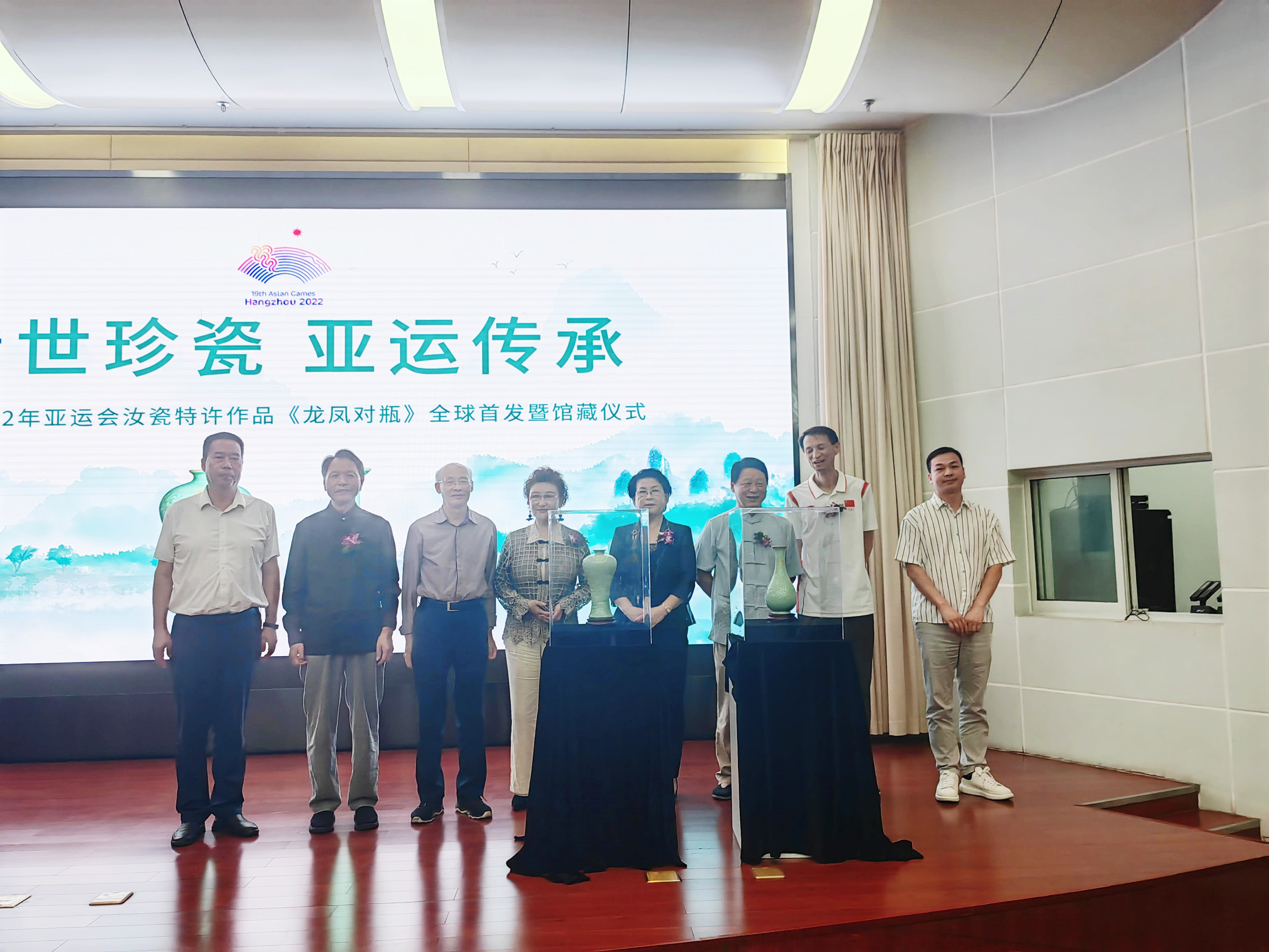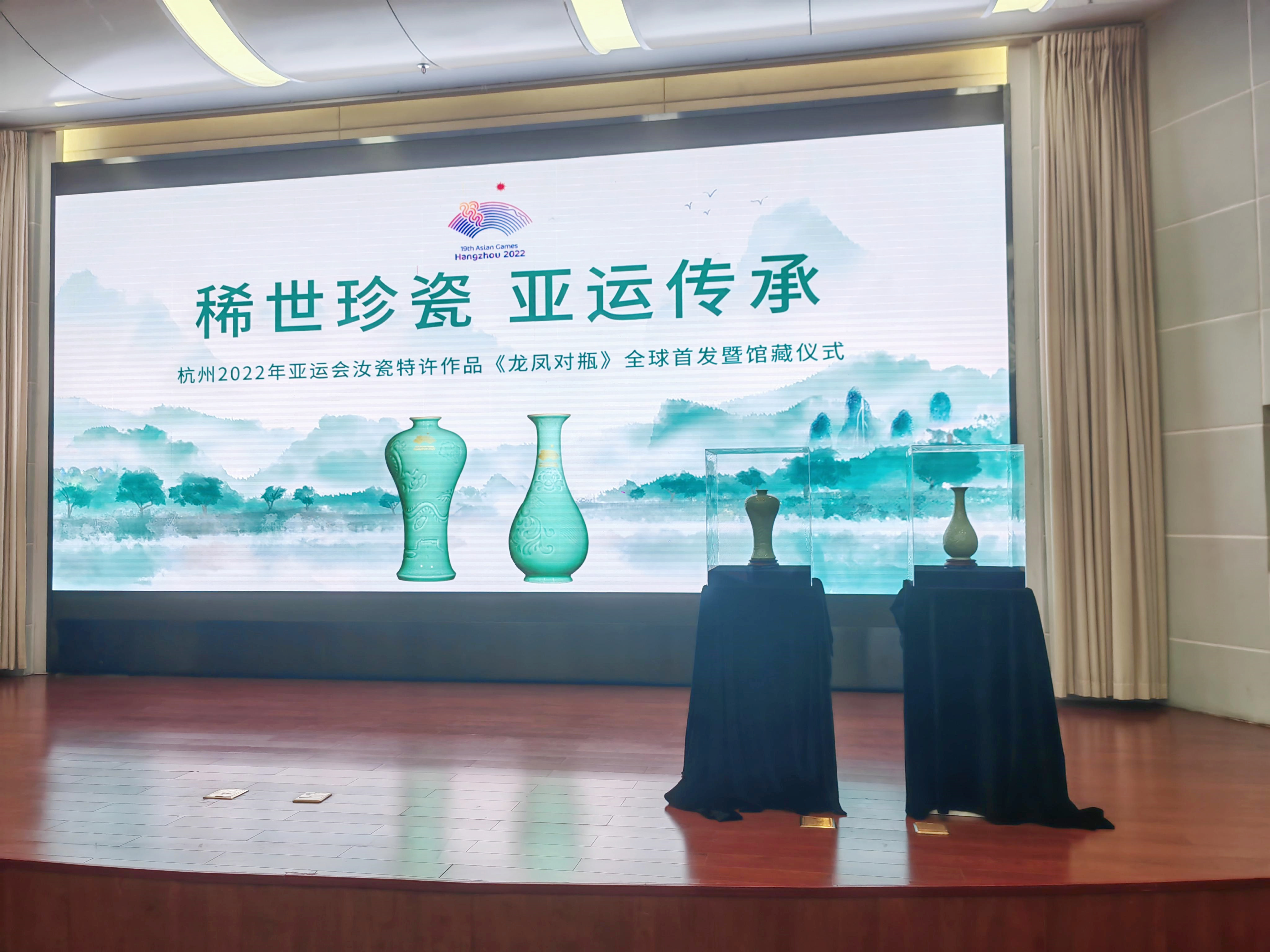 汝瓷牵手亚运会!杭州亚运会汝瓷特许作品《龙凤对瓶》全球首发暨馆藏仪式举行