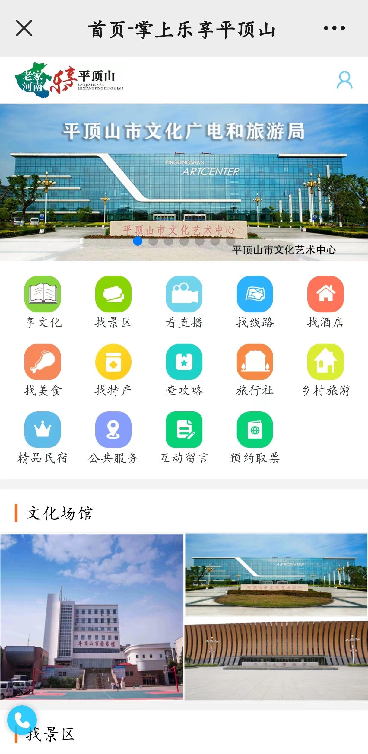 经手机微信搜索“掌上乐享平顶山”,胡女士登录上了这一服务平台,平台上面设置有“找景区”“找线路”“找美食”“找特产”“精品民宿”等板块,可将平顶山境内的景区、美食、酒店、特产等公共文化服务项目“一网打尽”。