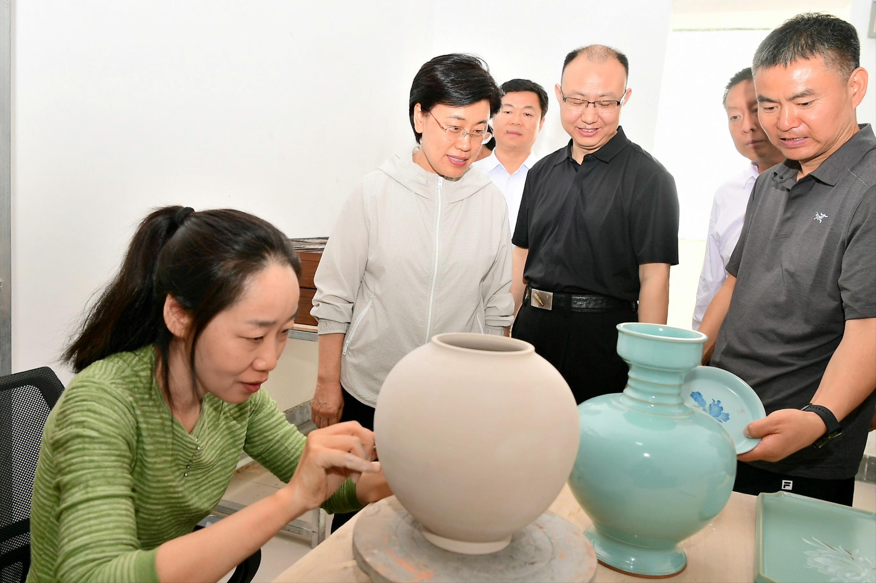 随后,陈向平来到卫东区蒲城古陶文化产业园,走进3D打印区、数控成型区、施釉区、烧制区等处,与企业负责人亲切交谈,了解园区规划建设及产品研发、工艺等情况,勉励企业加强创意设计,深化研发创新,让传统陶瓷工艺融入更多当代艺术元素、时代主流价值,在新时代绽放出更加绚丽的光彩。她指出,要坚持守正创新、强化科技赋能,一体化推进生产、制造、科研,把陶瓷文化与三苏文化、说唱文化紧密结合起来,把陶瓷与茶艺、插花、家居等生活美学有机融合起来,推动陶瓷产业在传承中创新突破、在发展中转型升级。要加大宣传推广力度,强化对外交流,把平顶山陶瓷文化名片擦得更亮。