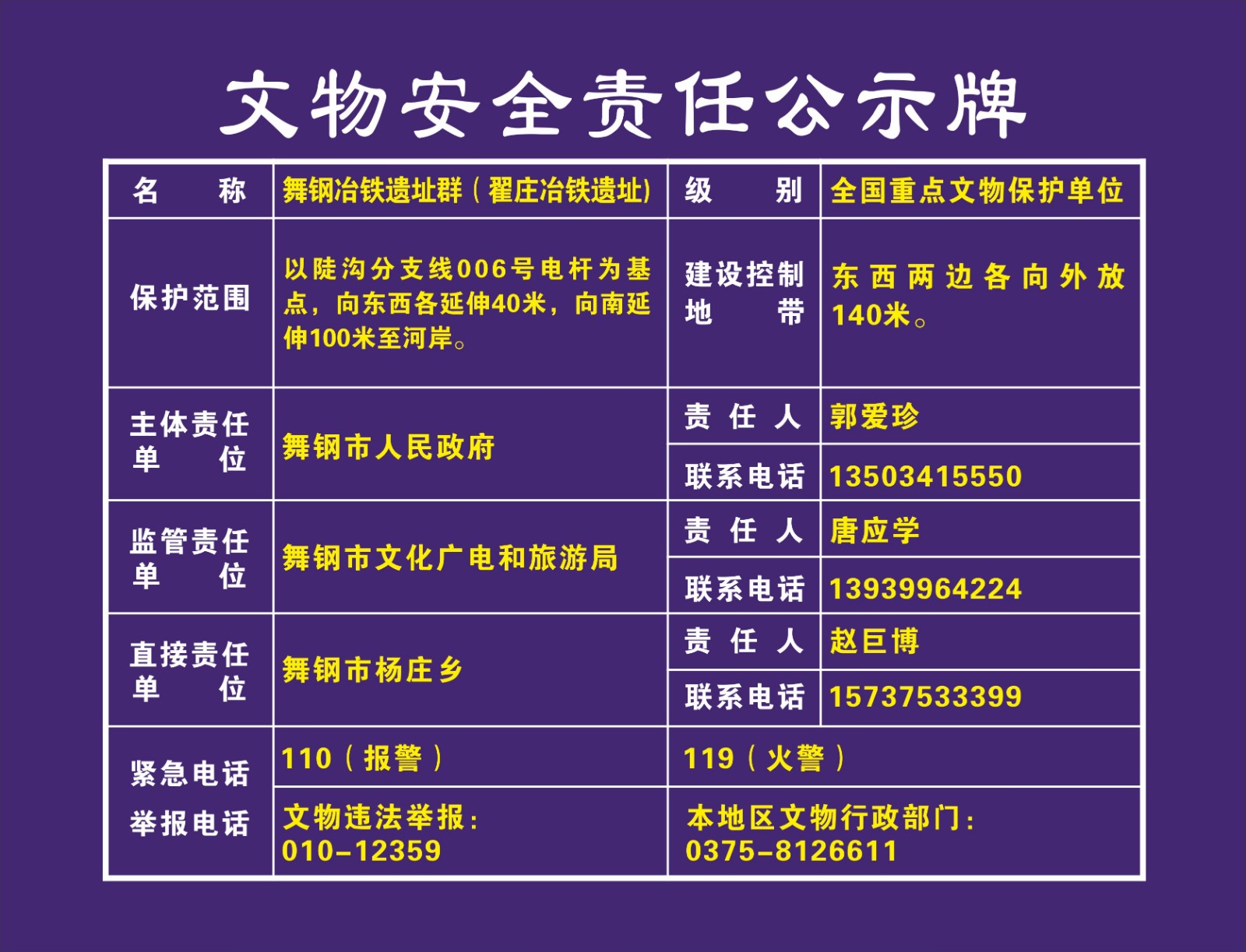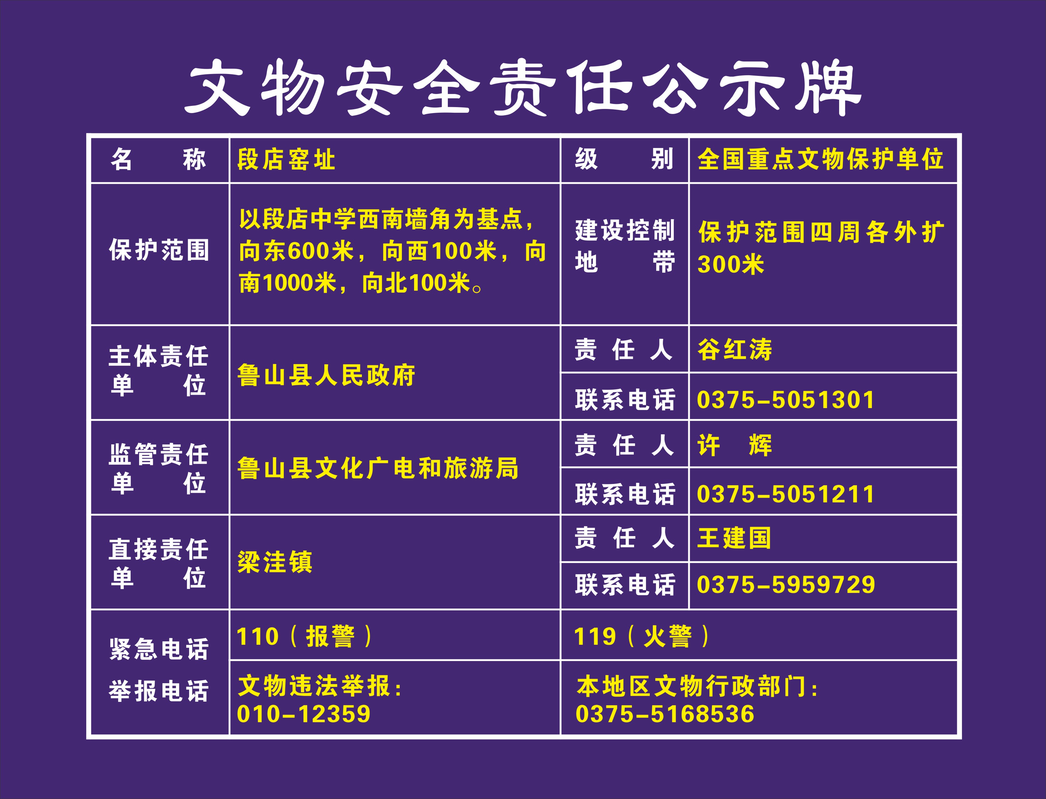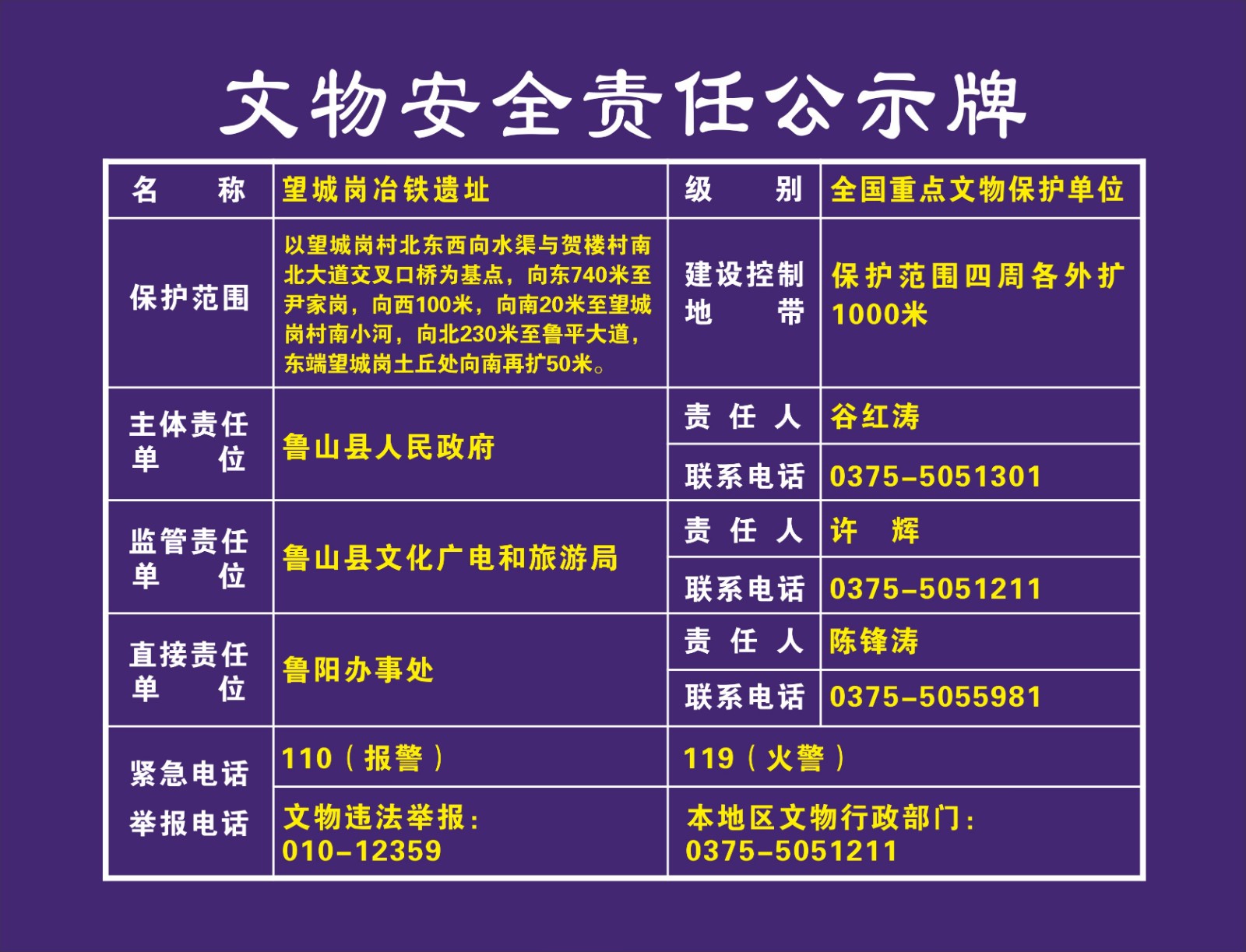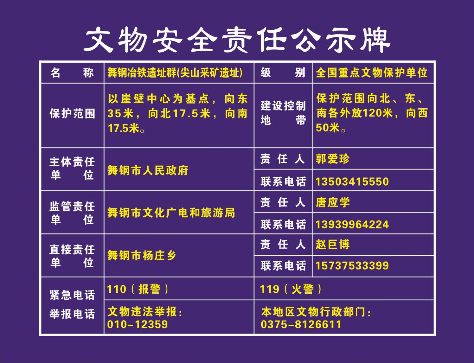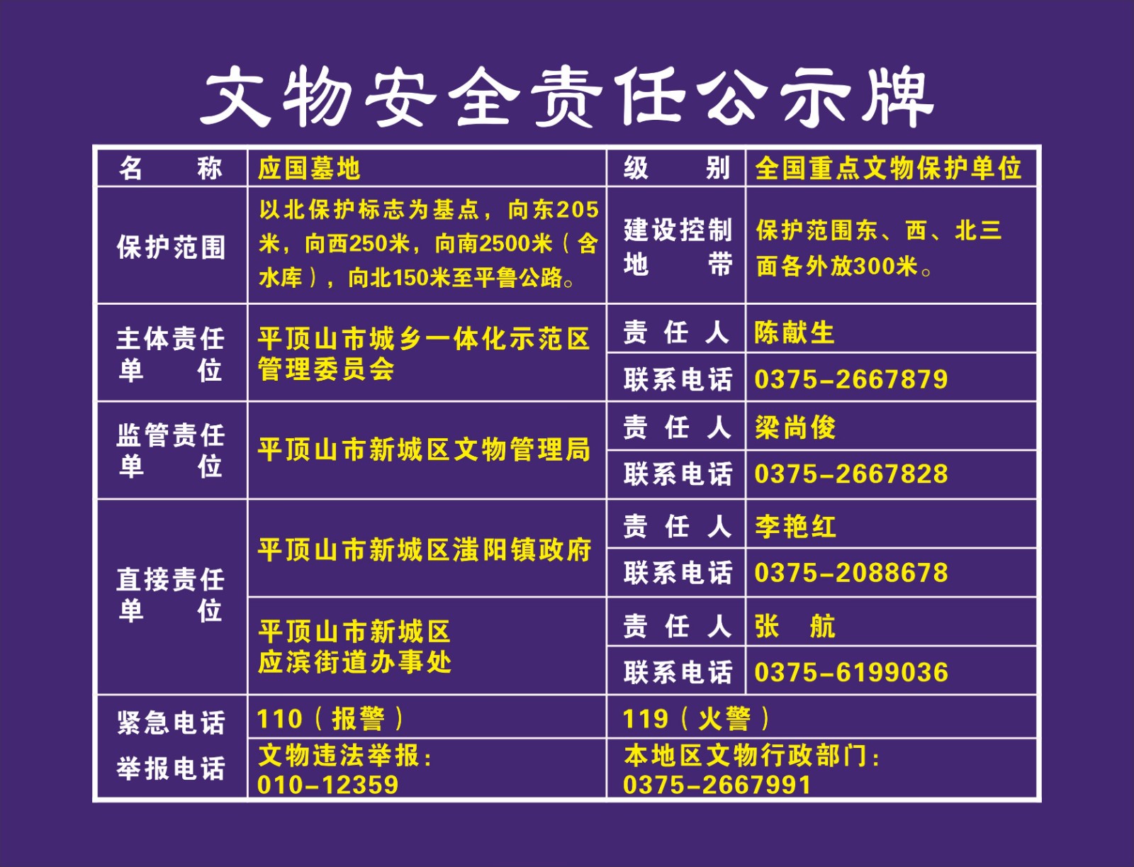 平顶山市全国重点文物保护单位安全责任公示牌