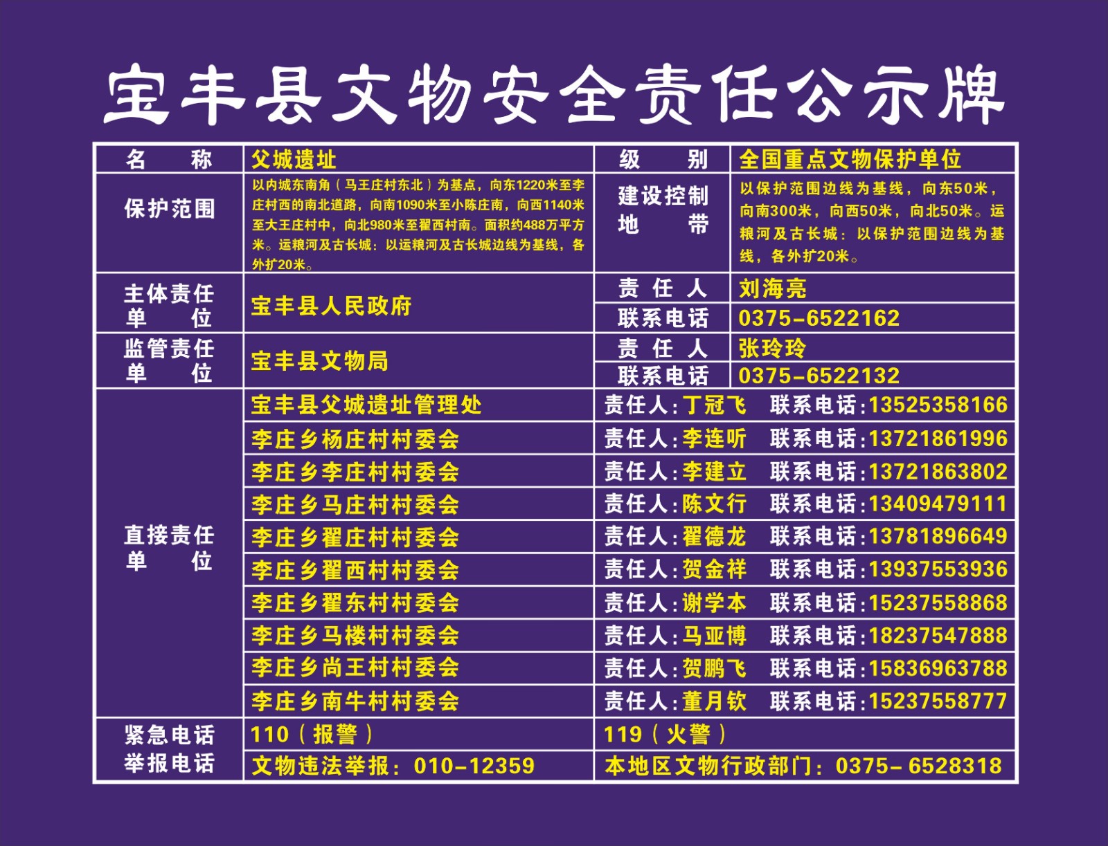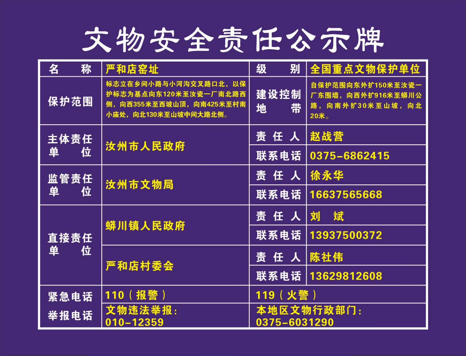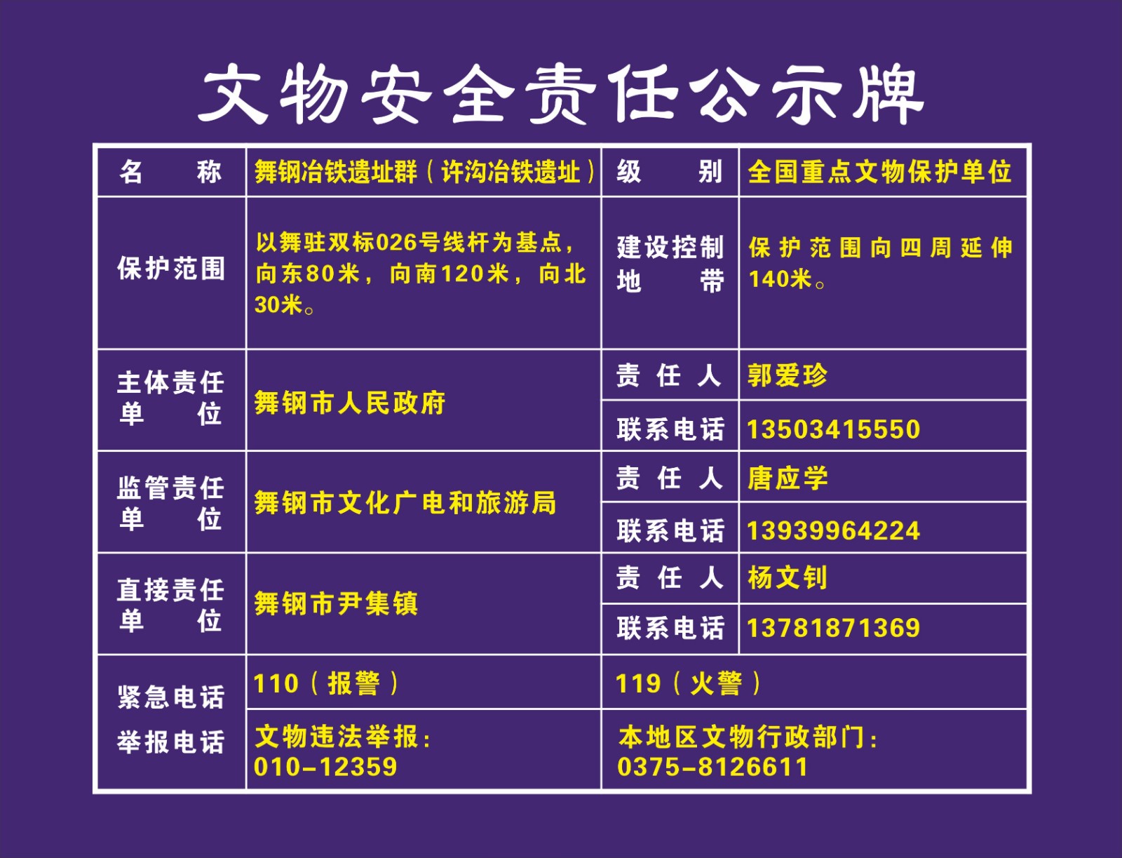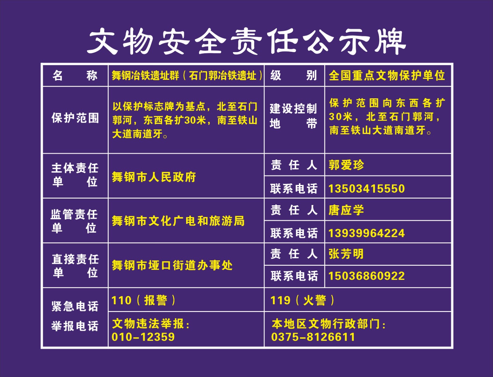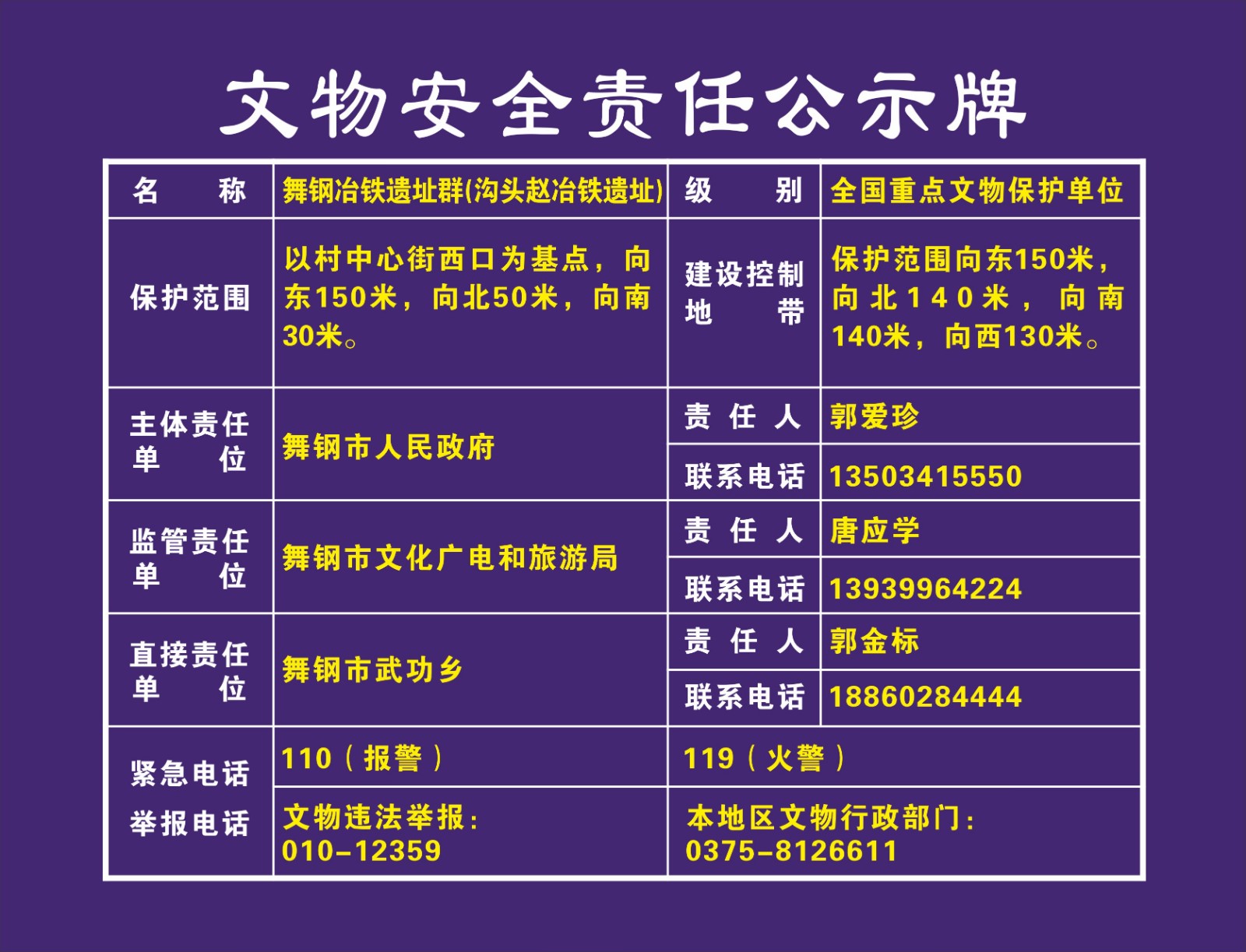 平顶山市全国重点文物保护单位安全责任公示牌