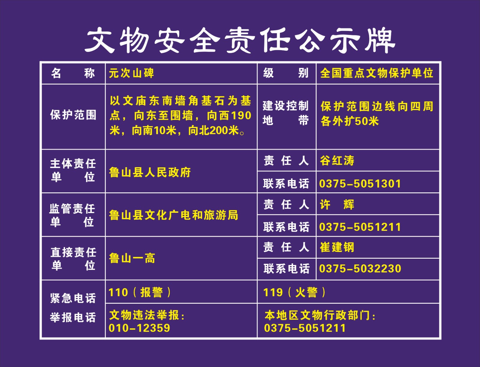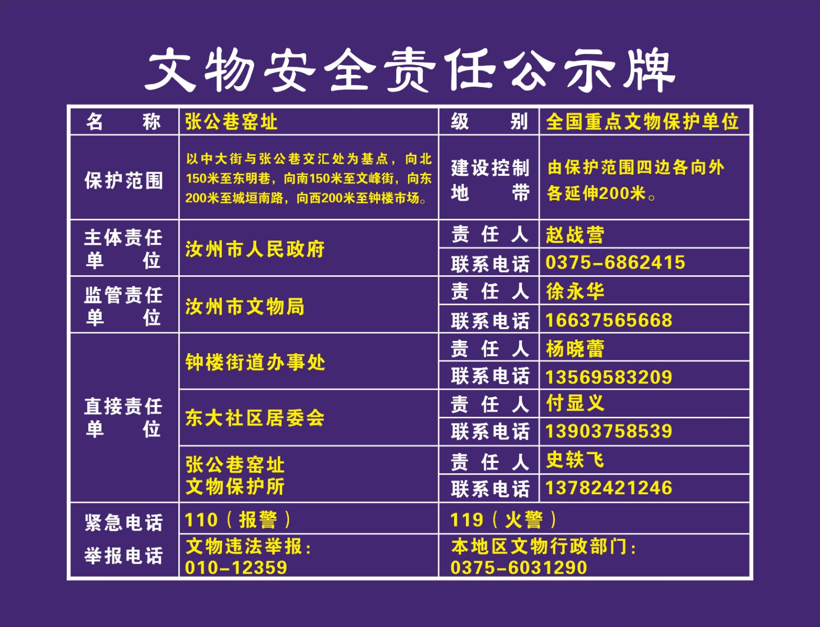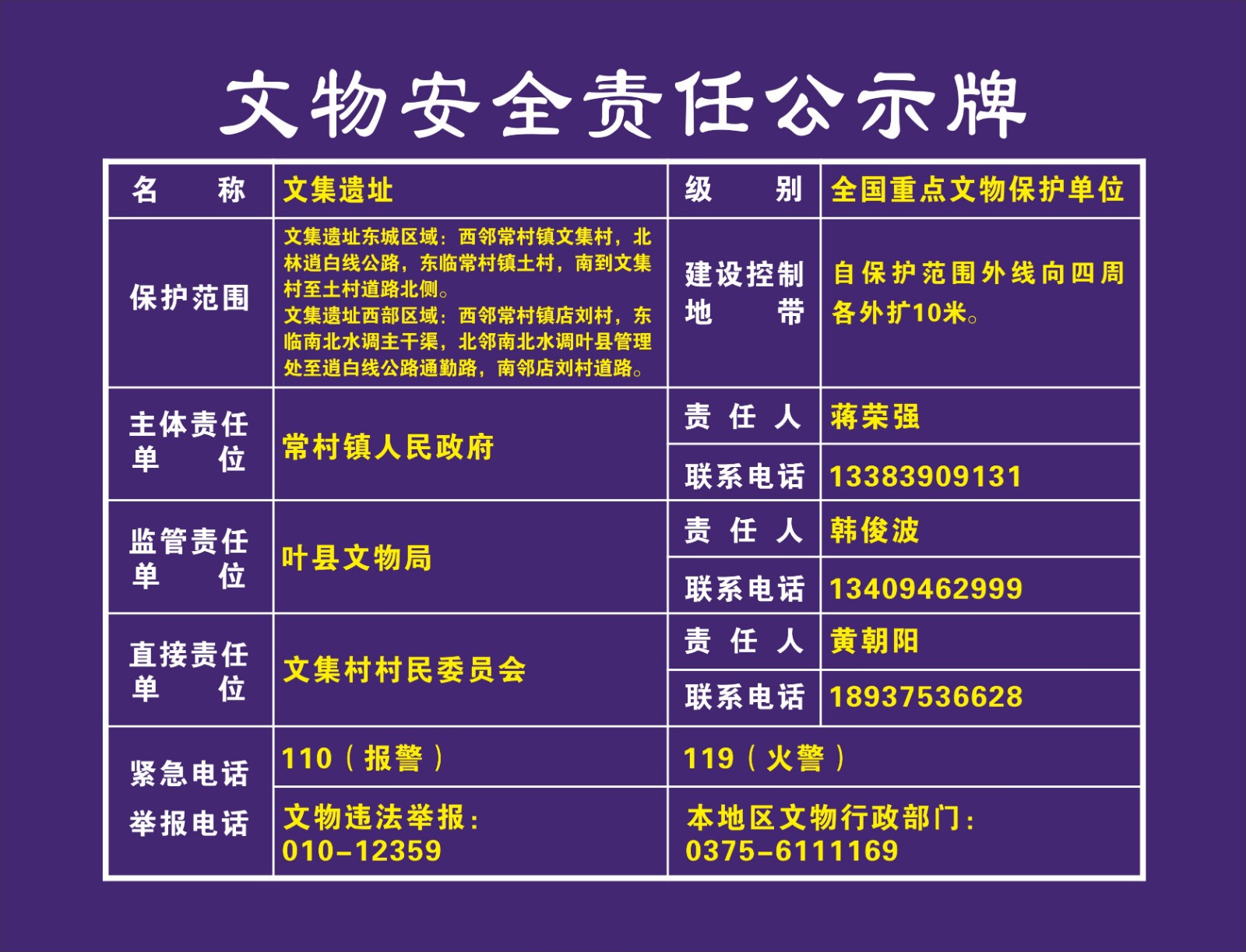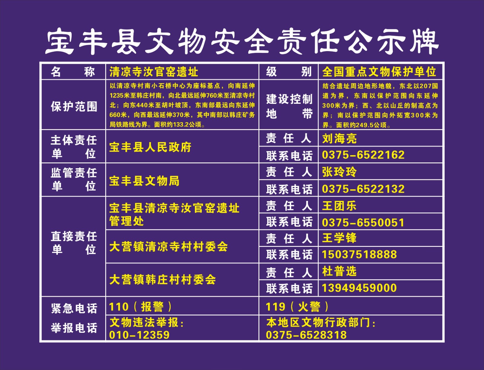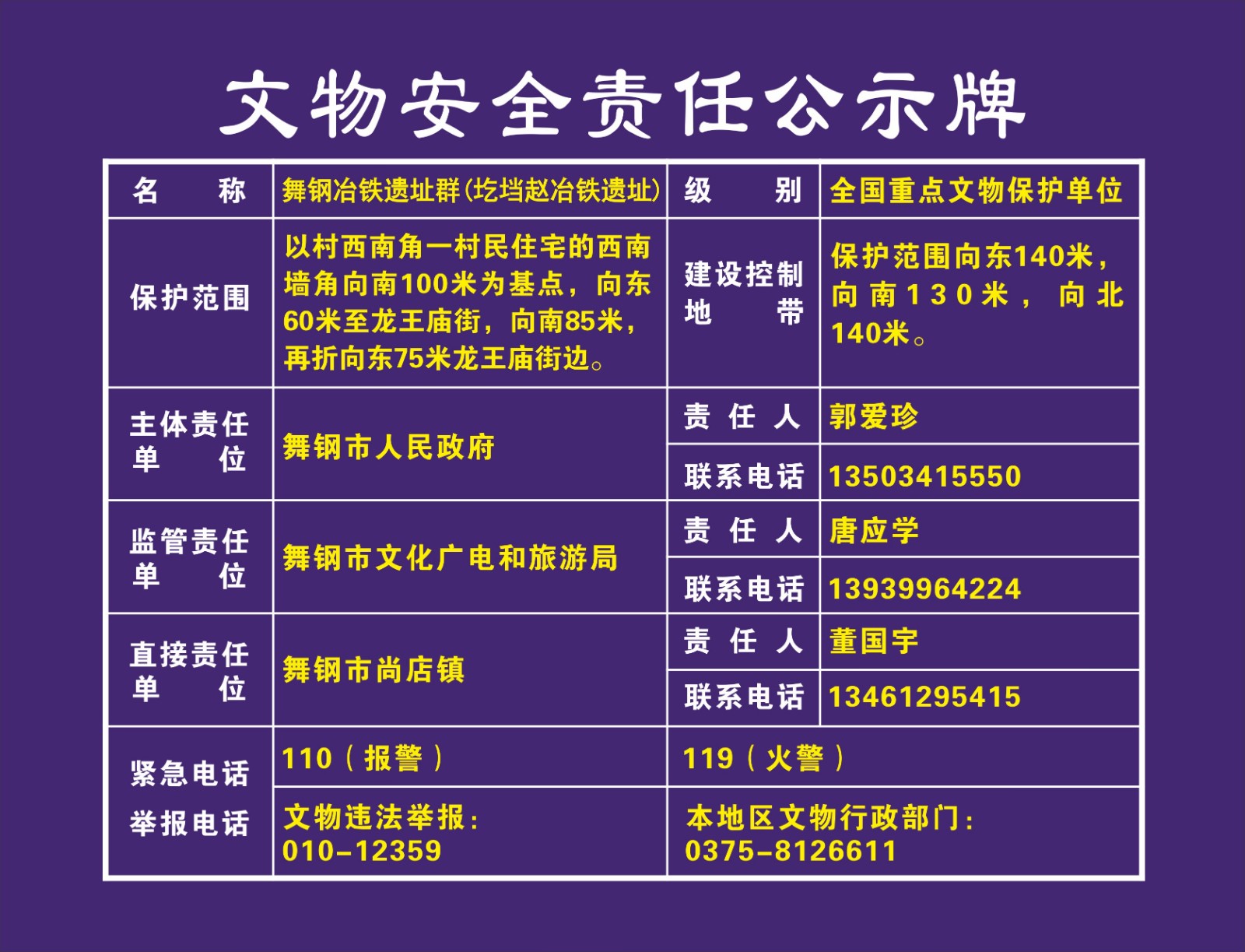 平顶山市全国重点文物保护单位安全责任公示牌