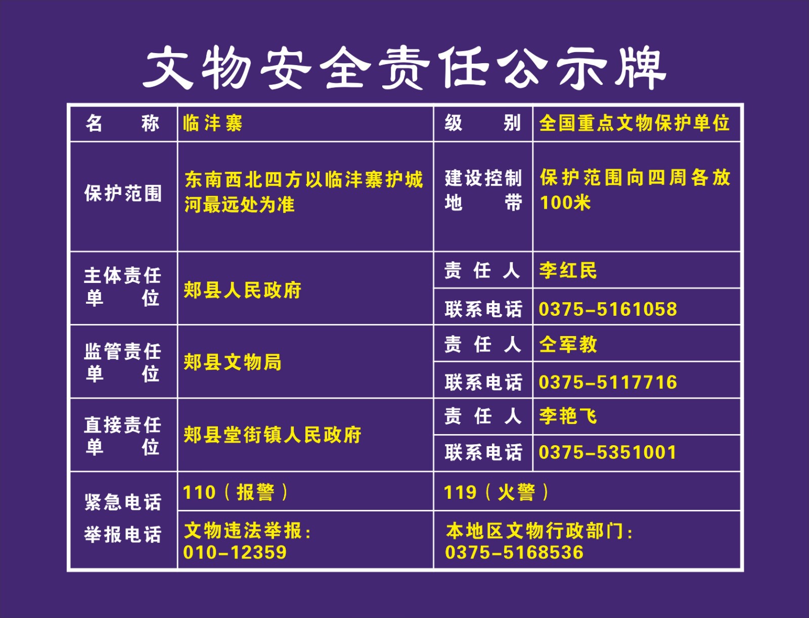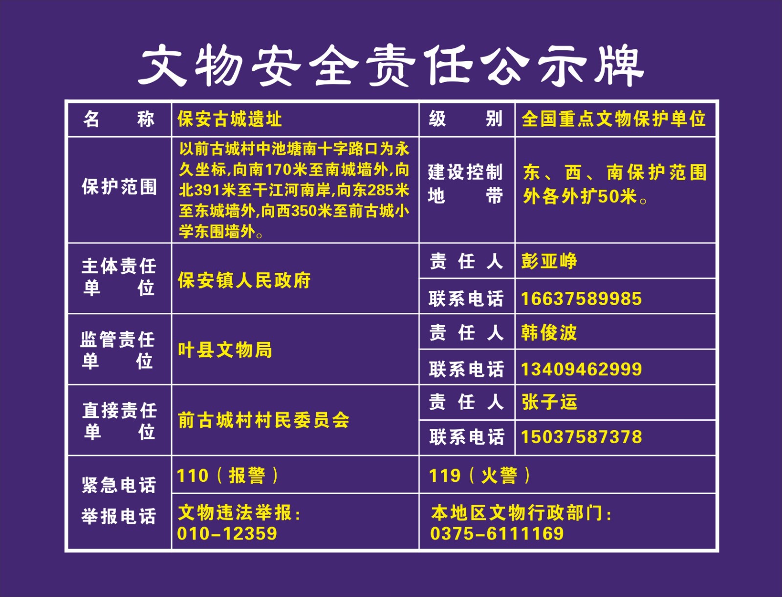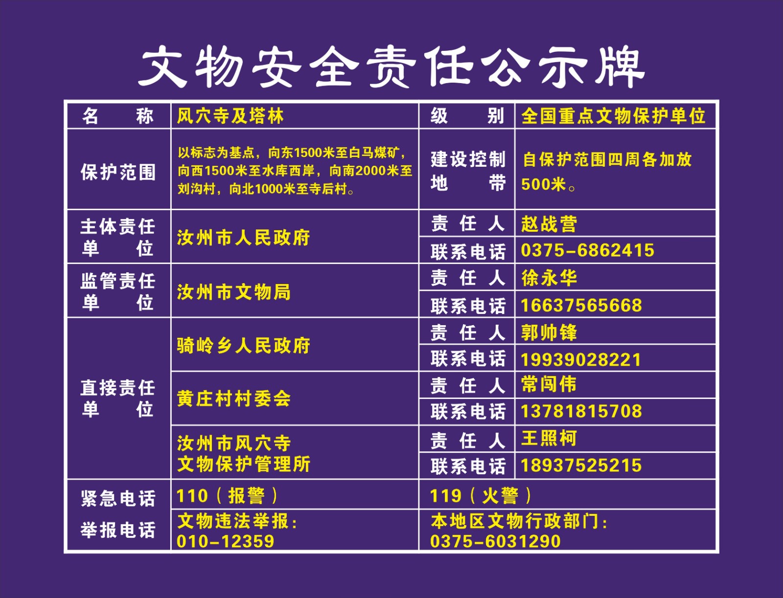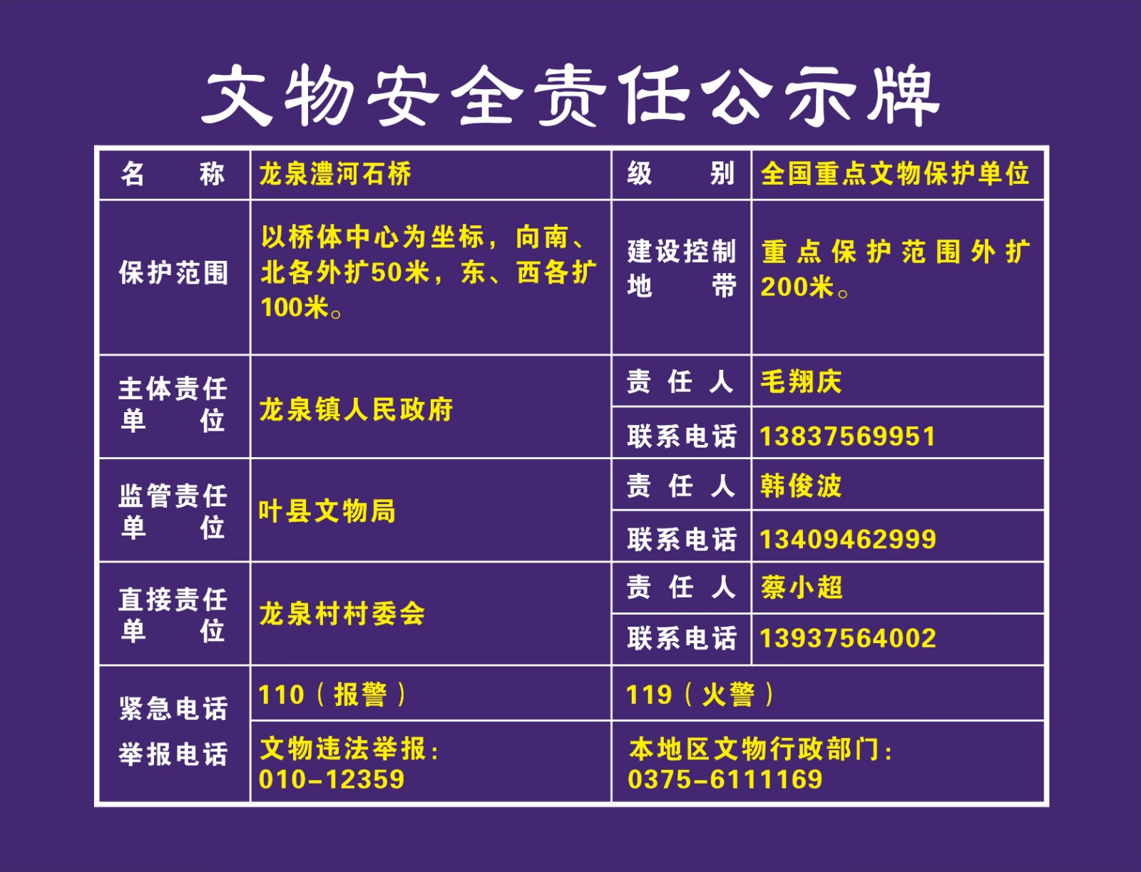 平顶山市全国重点文物保护单位安全责任公示牌