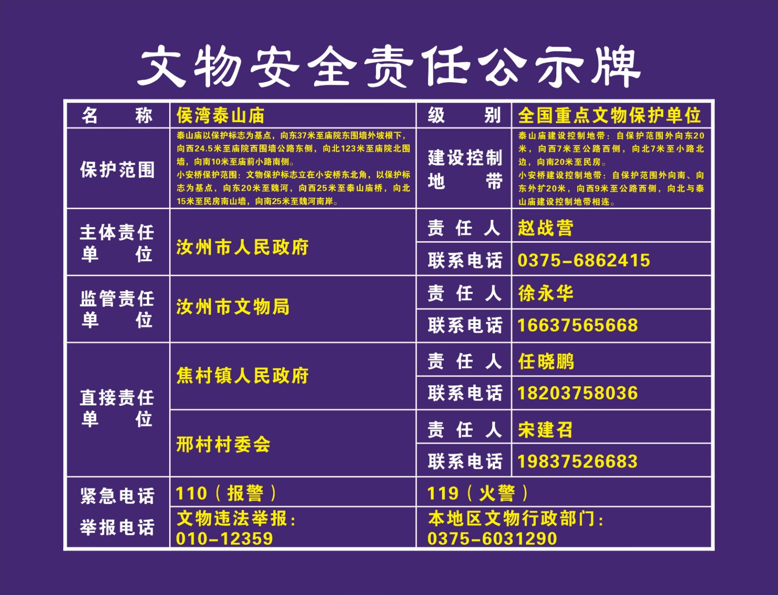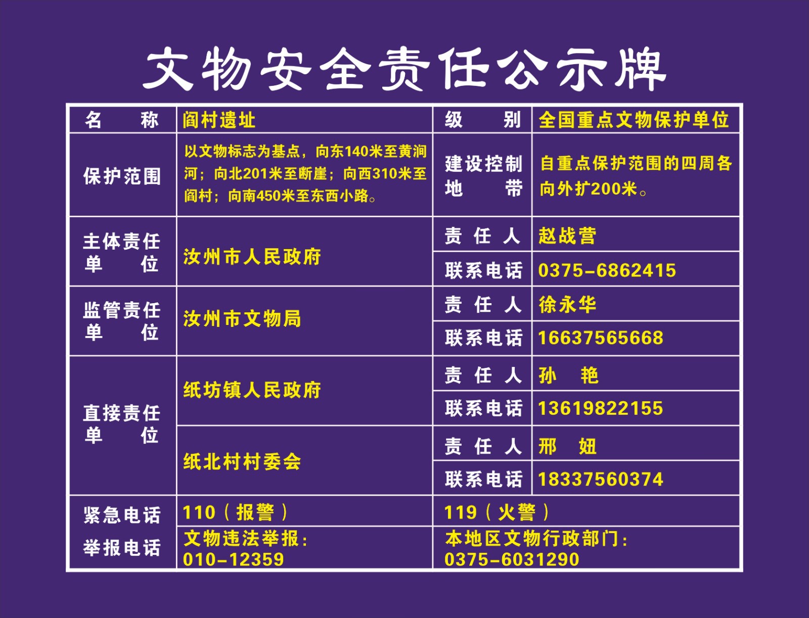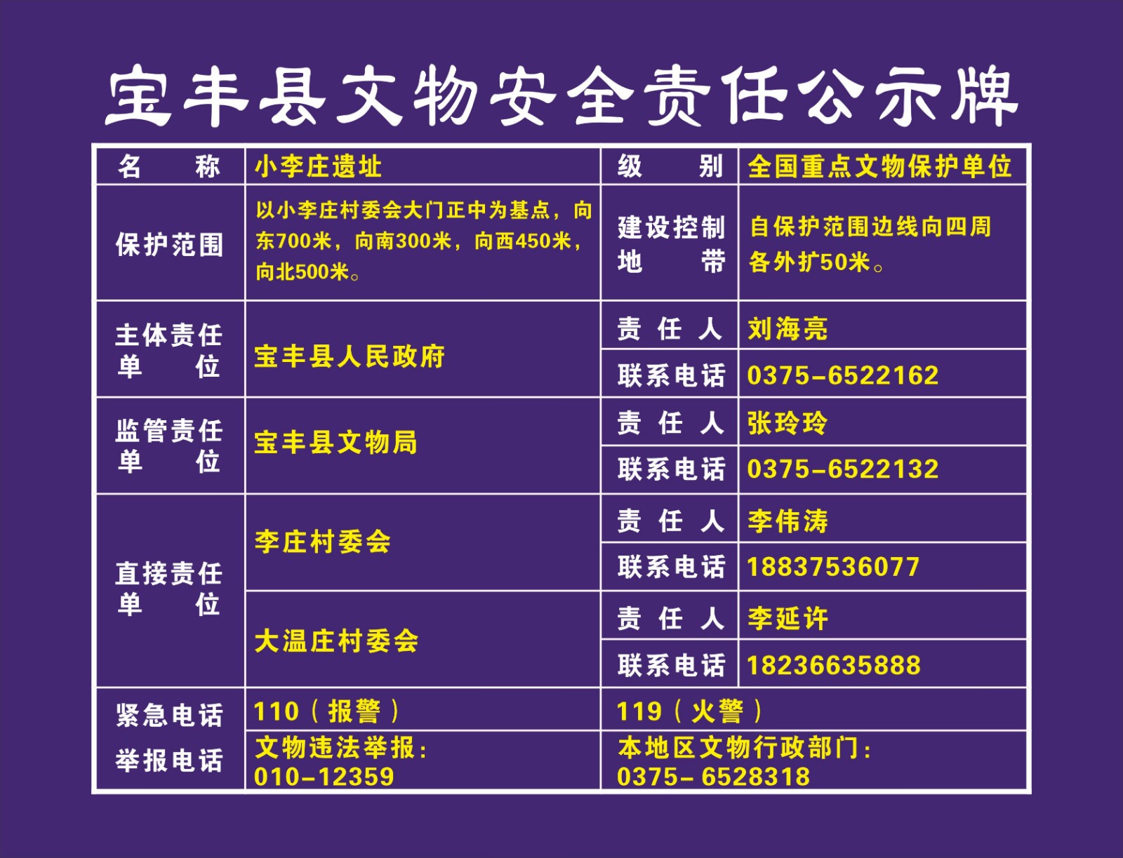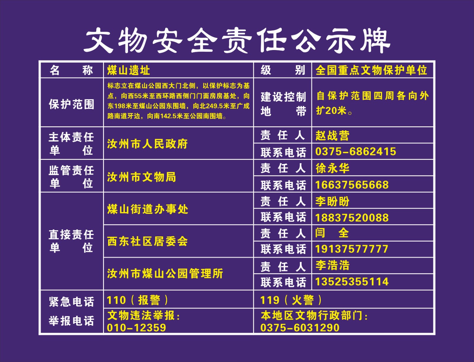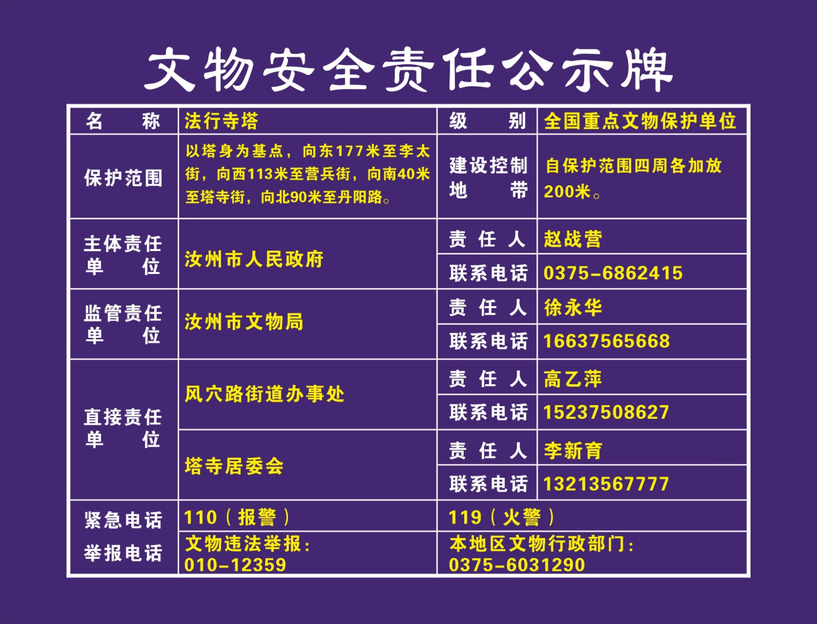 平顶山市全国重点文物保护单位安全责任公示牌