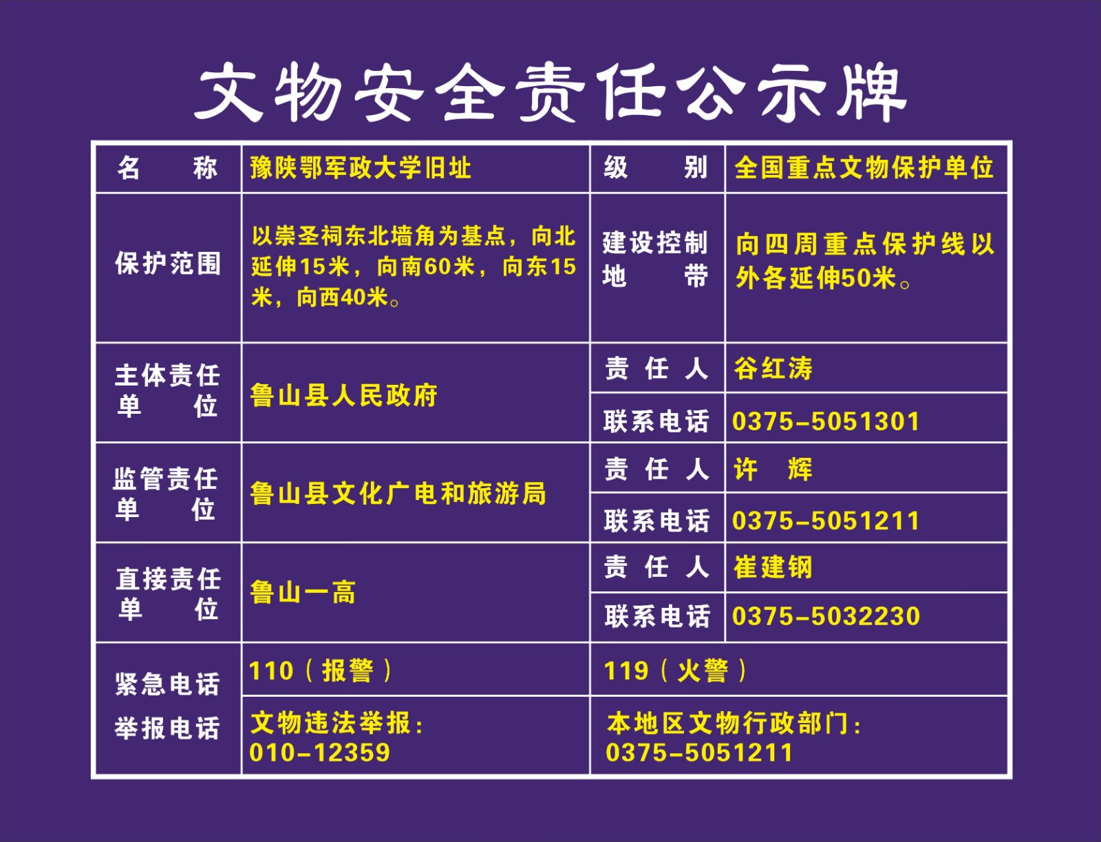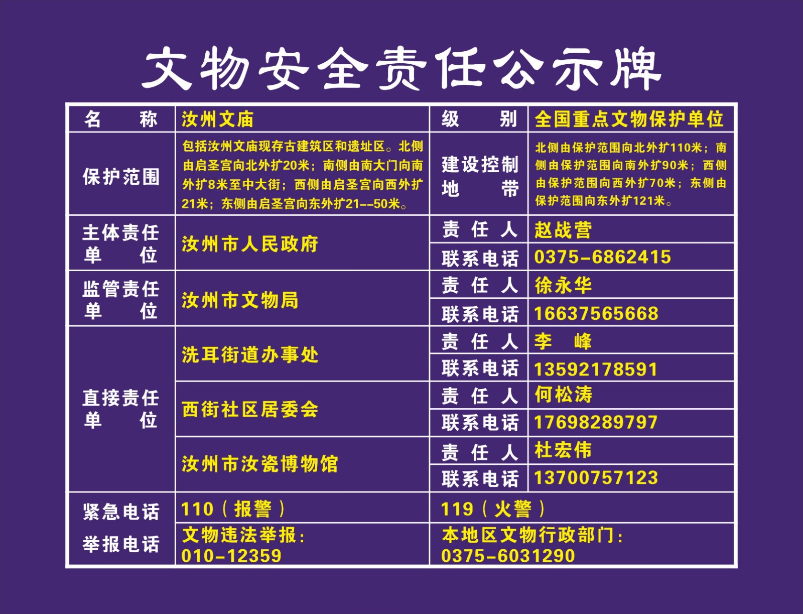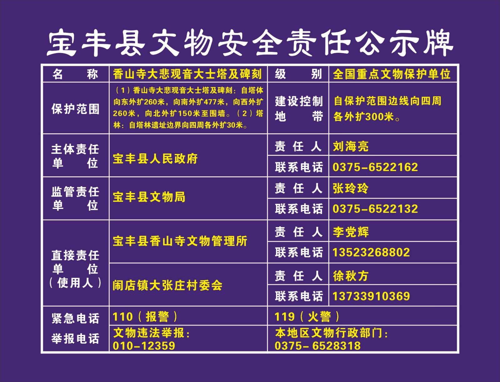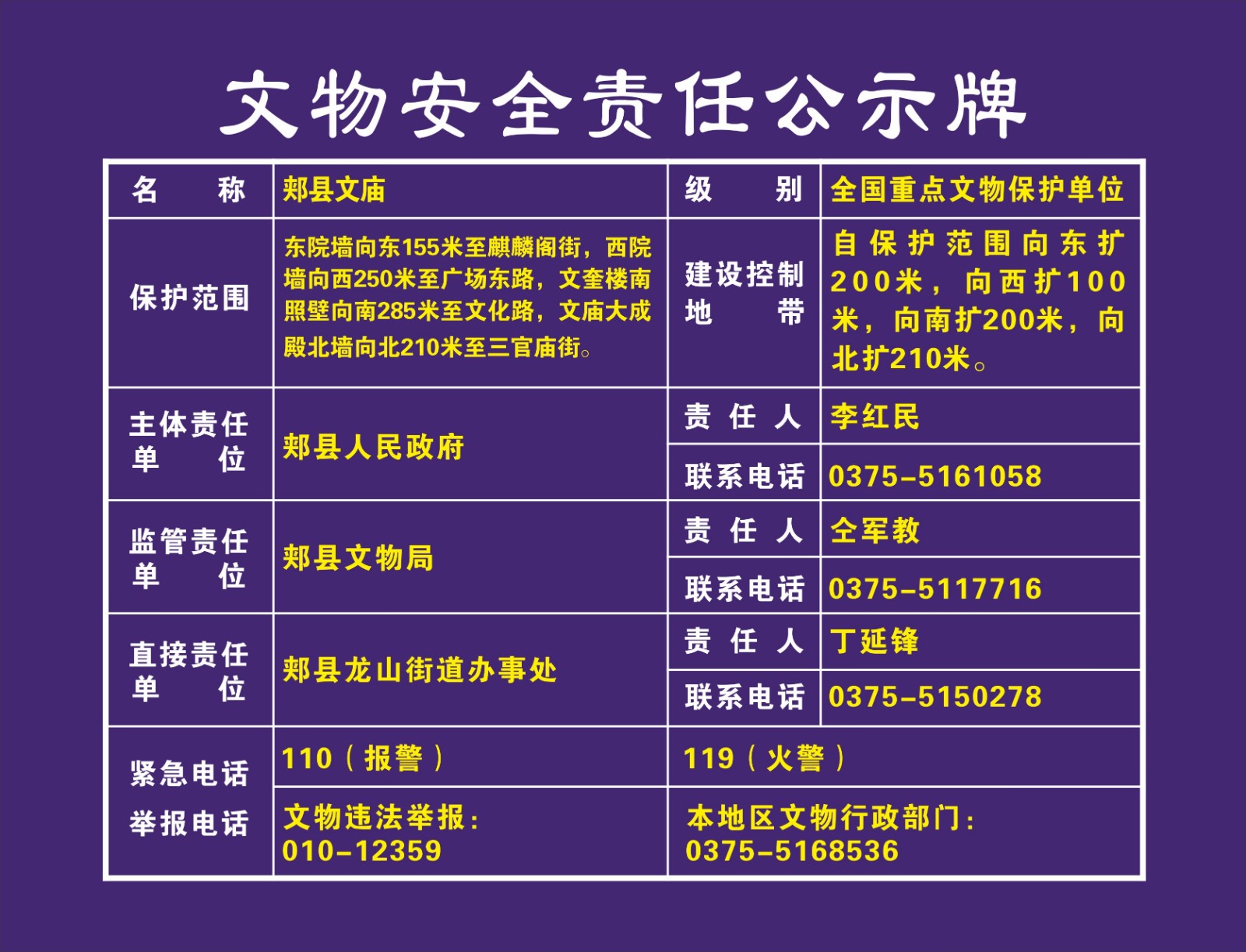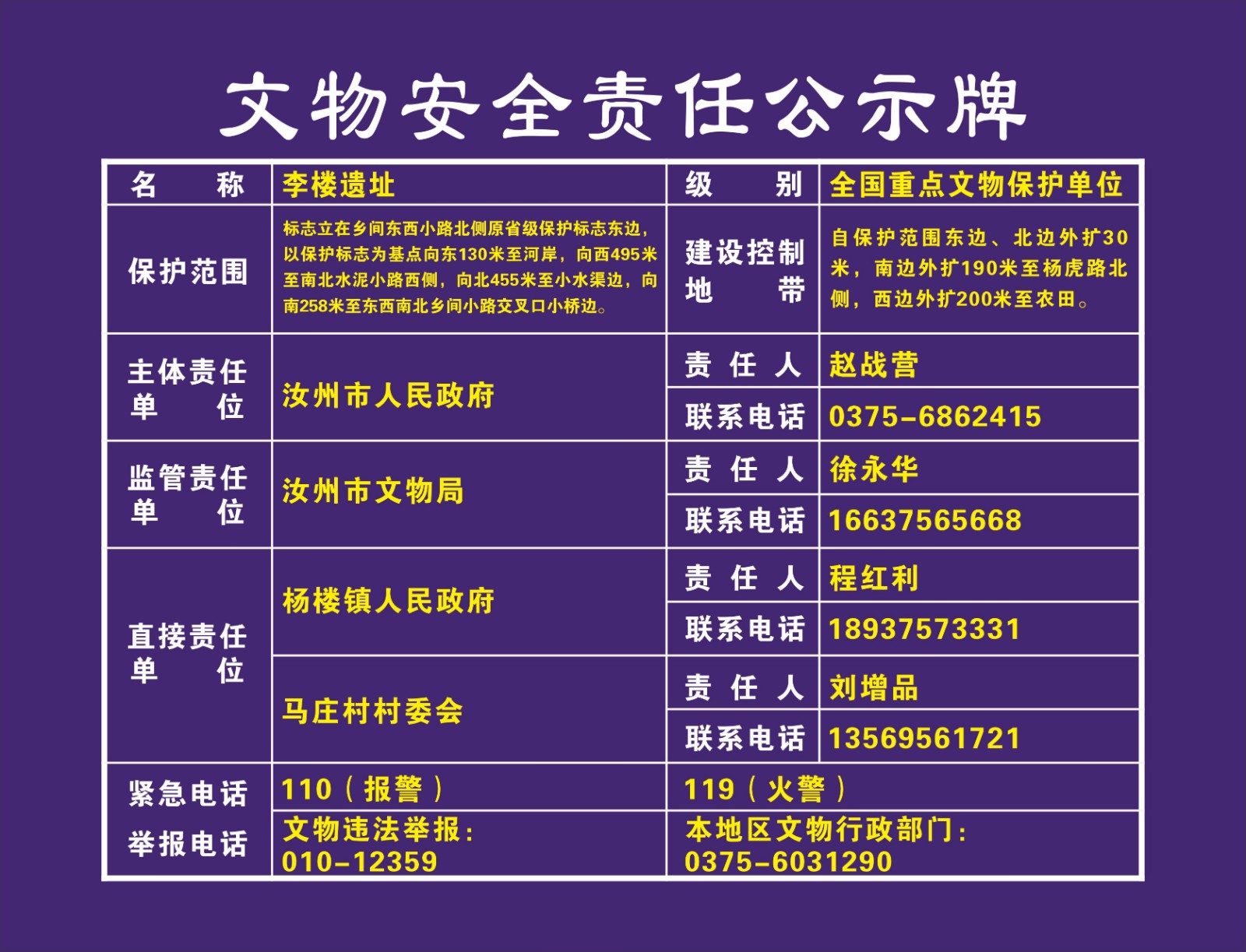 平顶山市全国重点文物保护单位安全责任公示牌