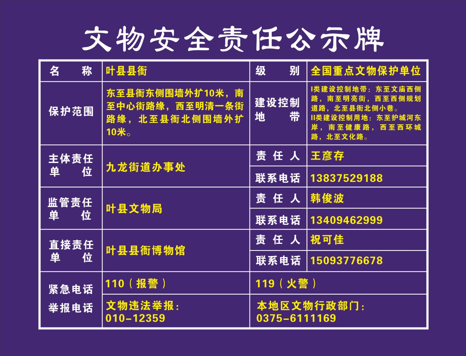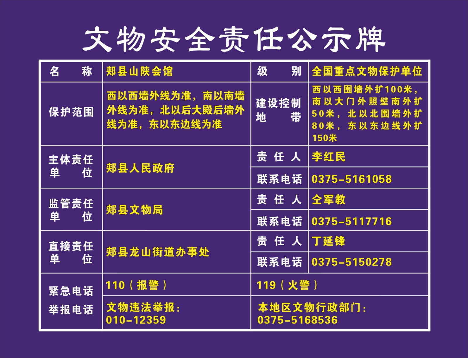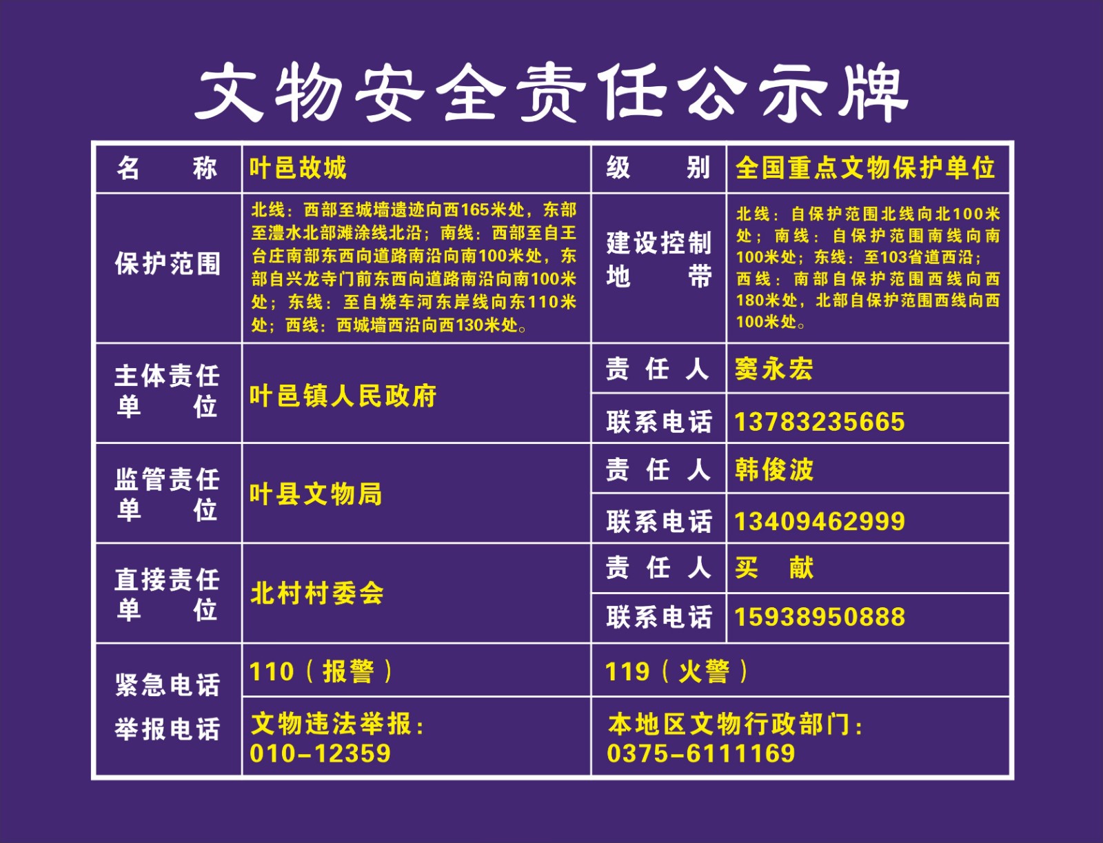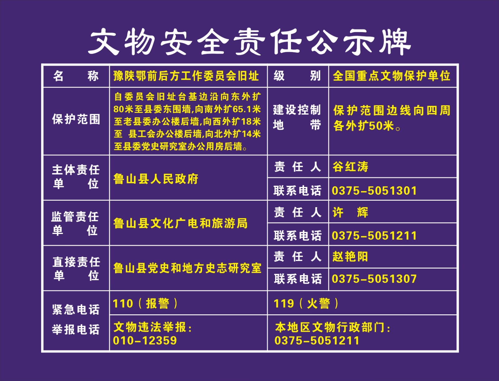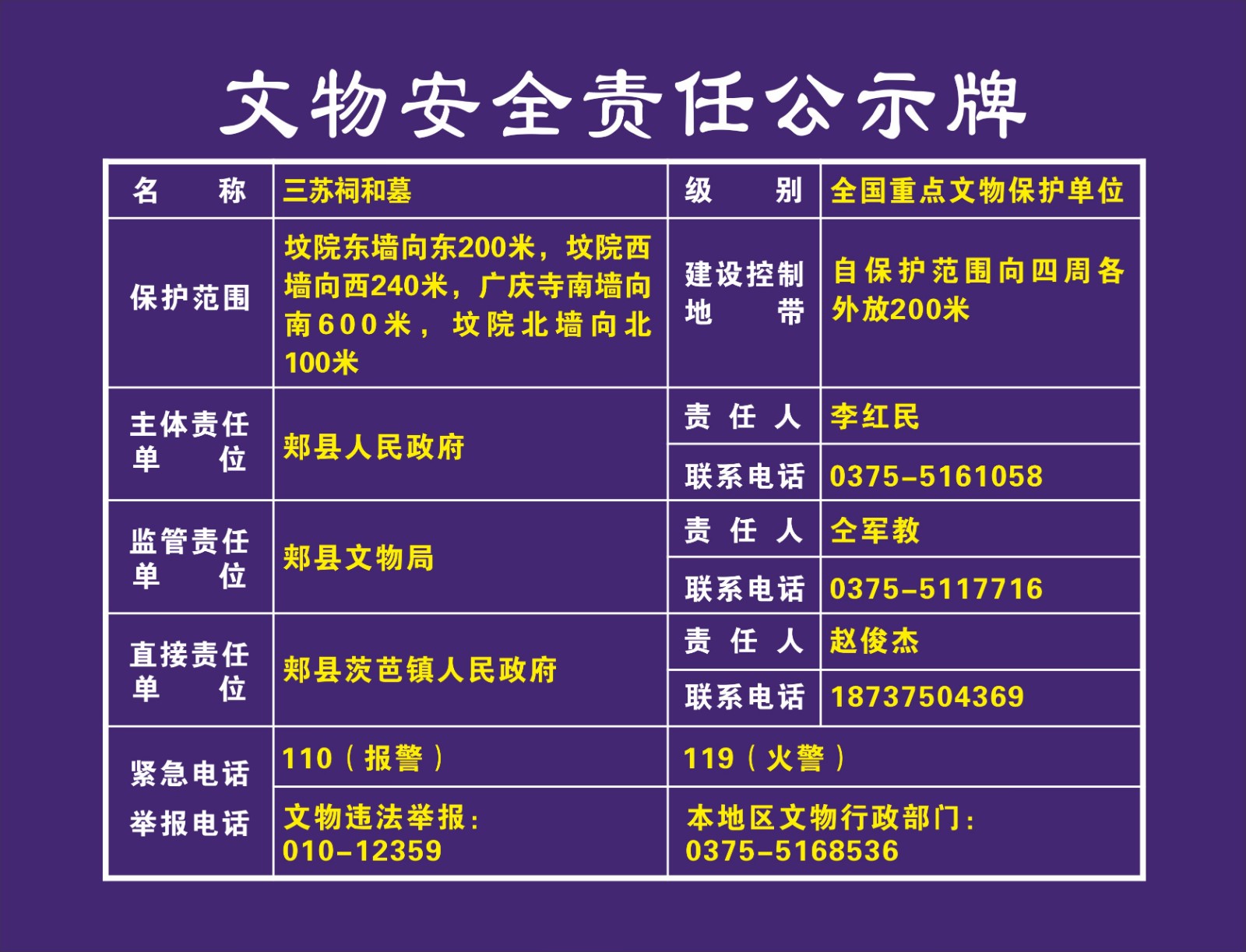 平顶山市全国重点文物保护单位安全责任公示牌